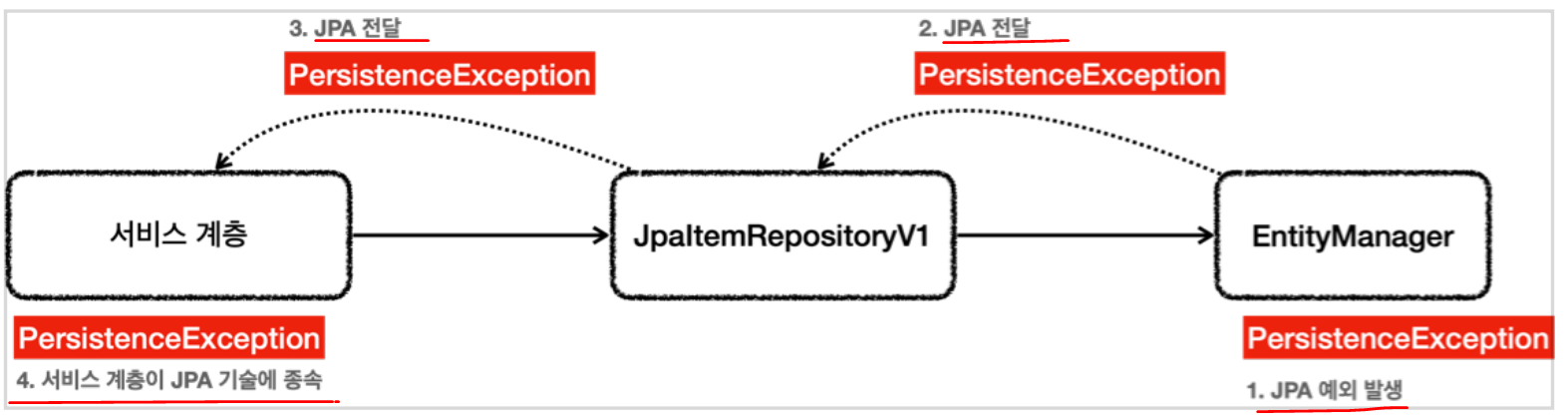 JPA의 경우 예외가 발생하면 JPA 예외가 발생하게 된다.