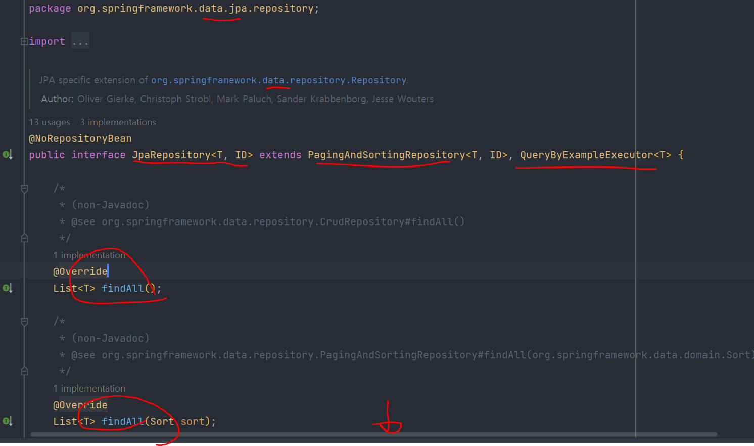 코드에는 보이지 않지만 JpaRepository 공통 인터페이스가 제공하는 기능이다.