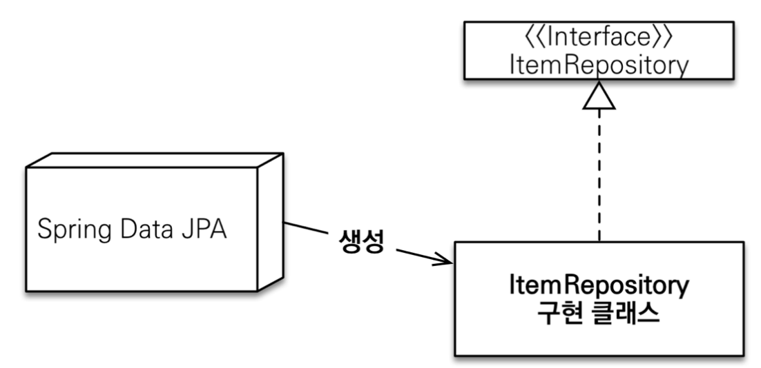 JpaRepository를 상속받은 SpringDataJpaItemRepository 인터페이스 객체를 이용하여 주입받아 사용한다. ]