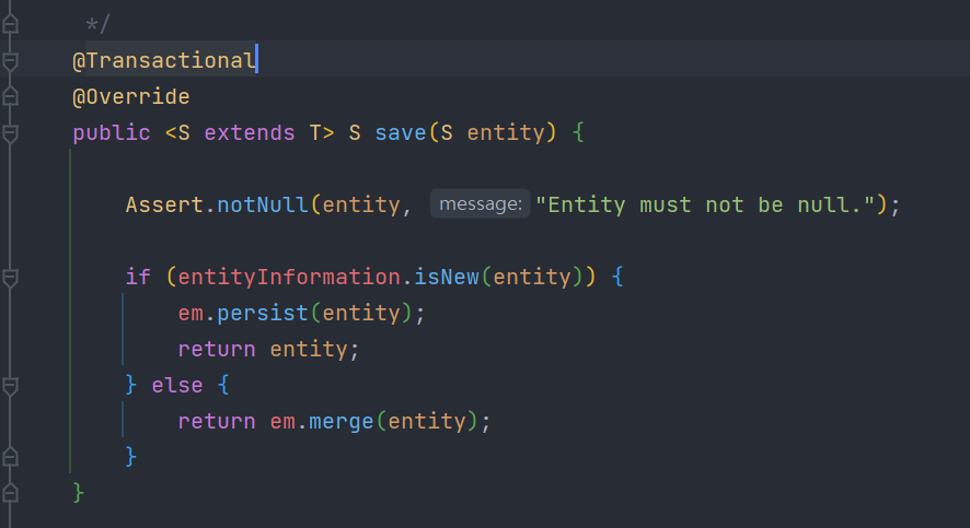 SimpleJpaRepository 클래스에 다음과 같이 구현되어있다.