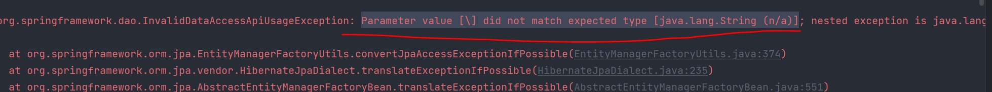 하이버네이트 5.6.6 ~ 5.6.7 을 사용하면 Like 문장을 사용할 때 다음 예외가 발생한다.