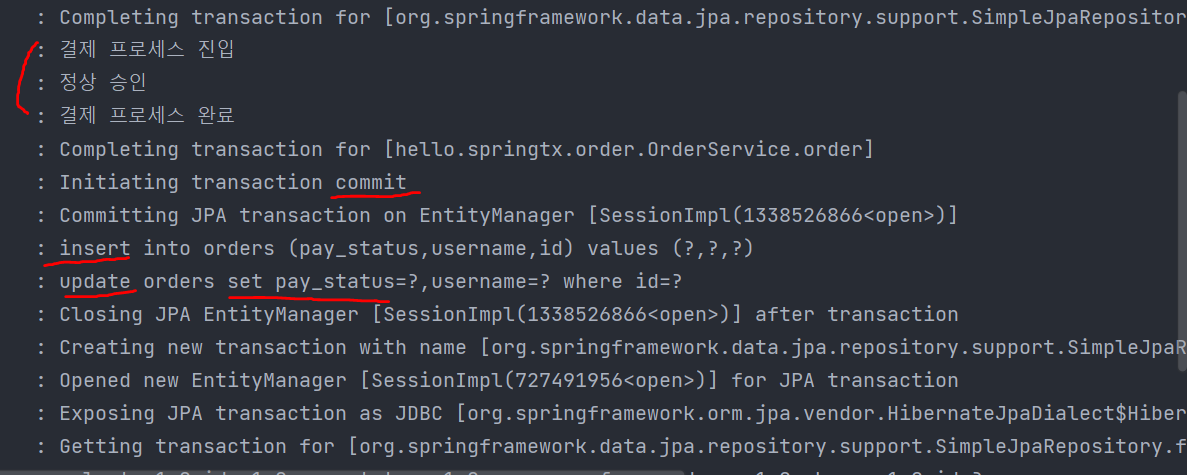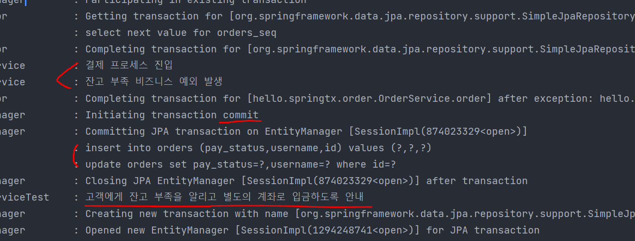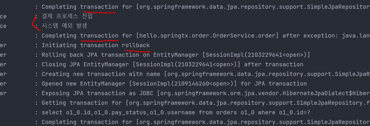 커밋이 되는지, 롤백이 되는지 확인하기 위해 로그 출력