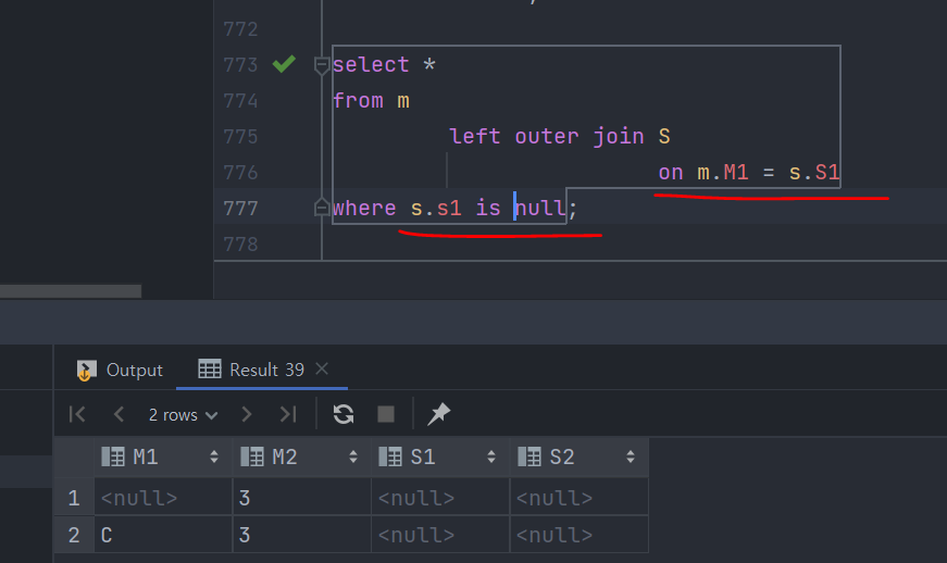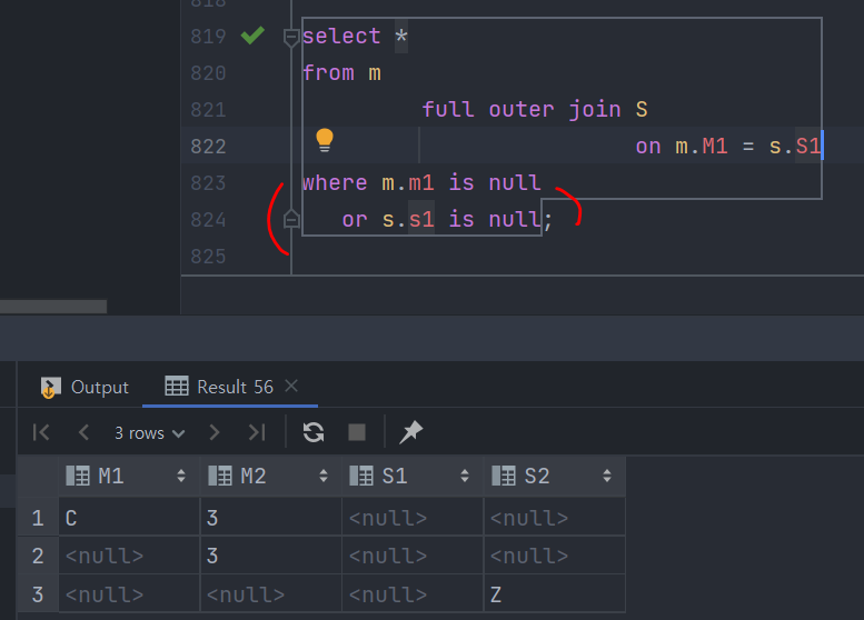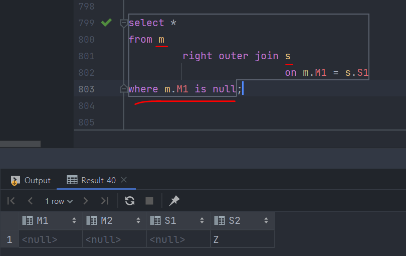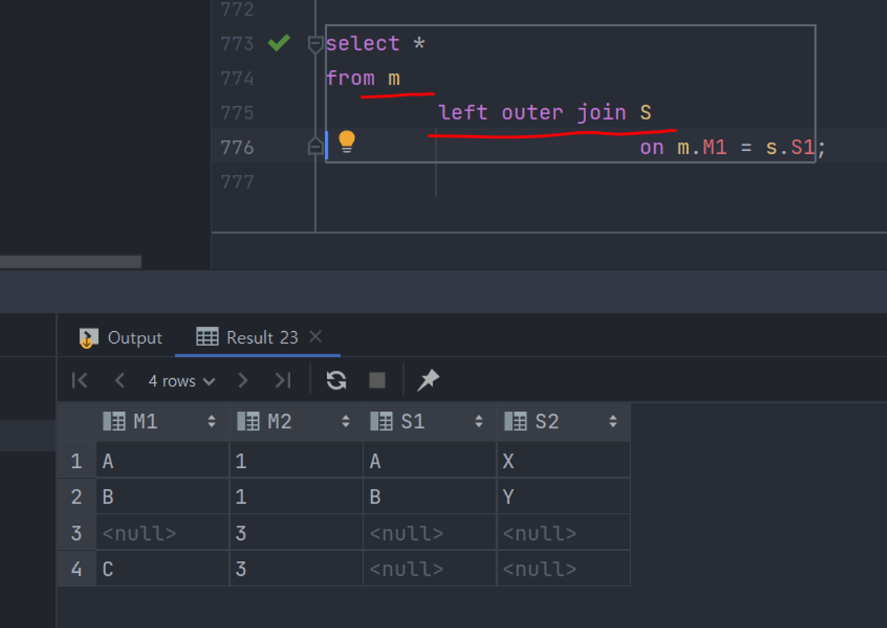 s 테이블이 메인 테이블이기 때문에 s테이블의 모든 데이터가 조회되고 m테이블은 참조 용도로만 사용된다.