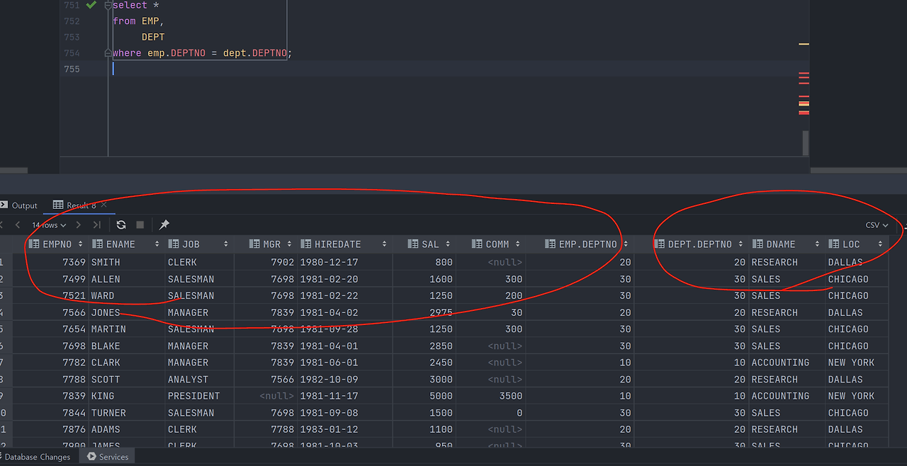 join dept on EMP.DEPTNO = dept.DEPTNO
