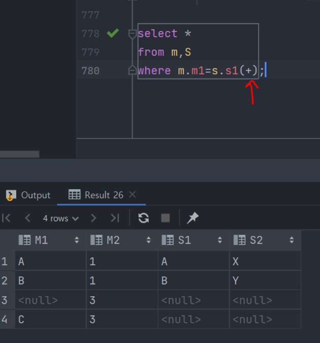 조인 칼럼에 (+)를 붙이면 해당 칼럼의 테이블이 조인 테이블이 된다.