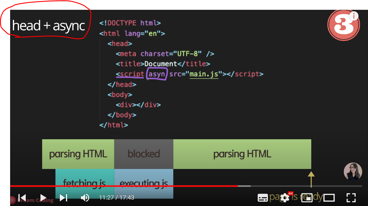 하지만 여전히 자바스크립트를 실행하는 도중에는 parsing을 멈추기 때문에