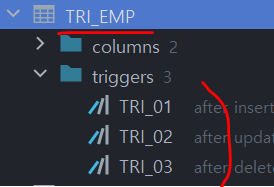 트리거는 TABLE과는 별도로 DATABASE에 저장된다.