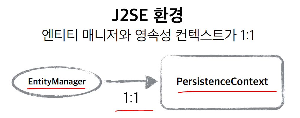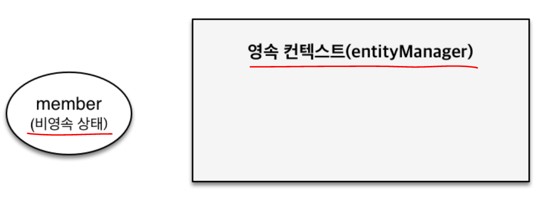 //영속 -> db에 저장되는것이 아닌 영속성 컨텍스트에 들어가는것.