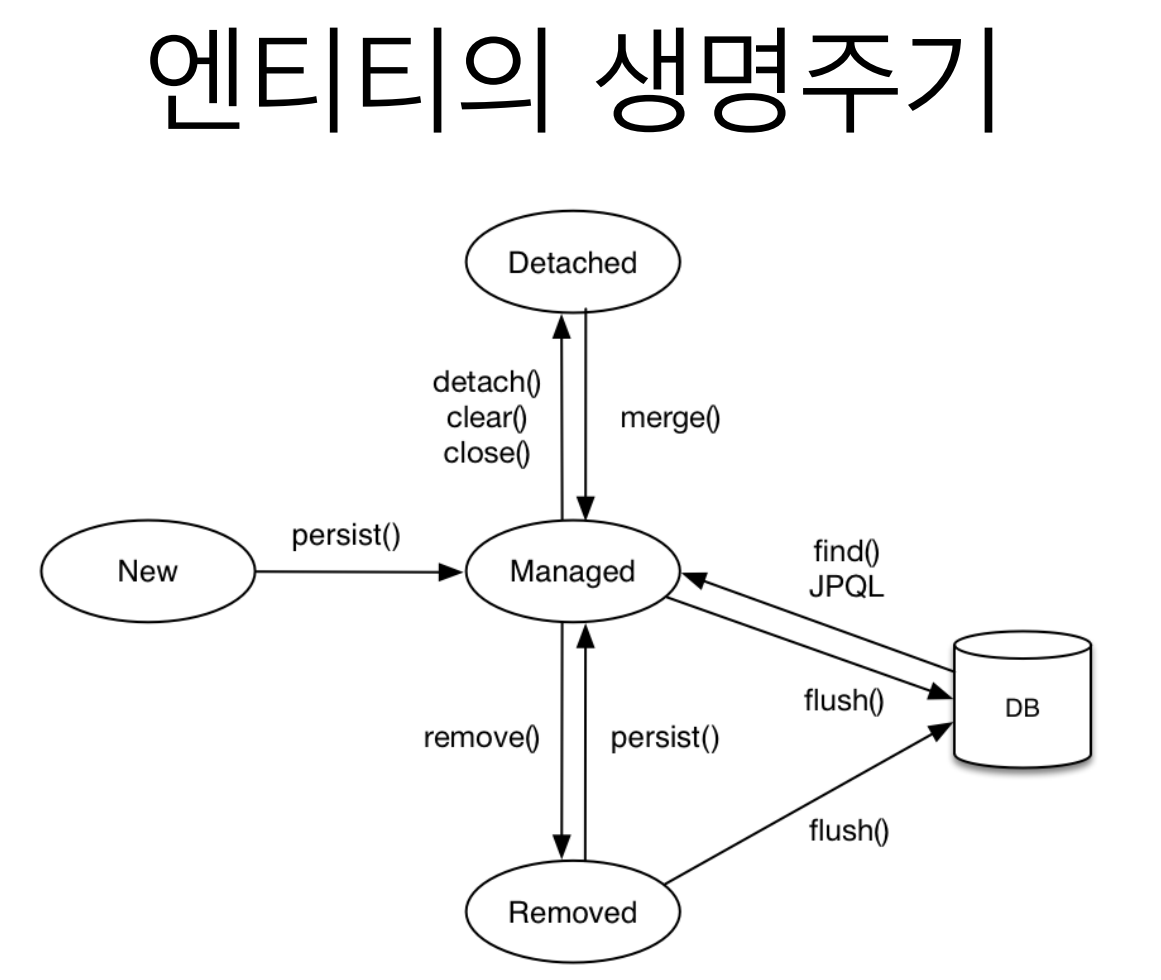 영속 상태: em.persist를 하거나, em.find에했는데 1차캐시에 없어서 DB에서 찾아서 1차캐시에 넣은상태