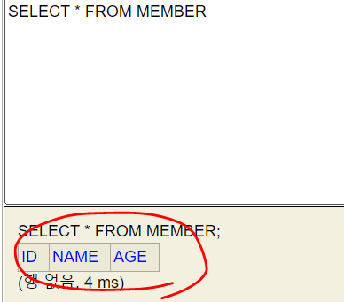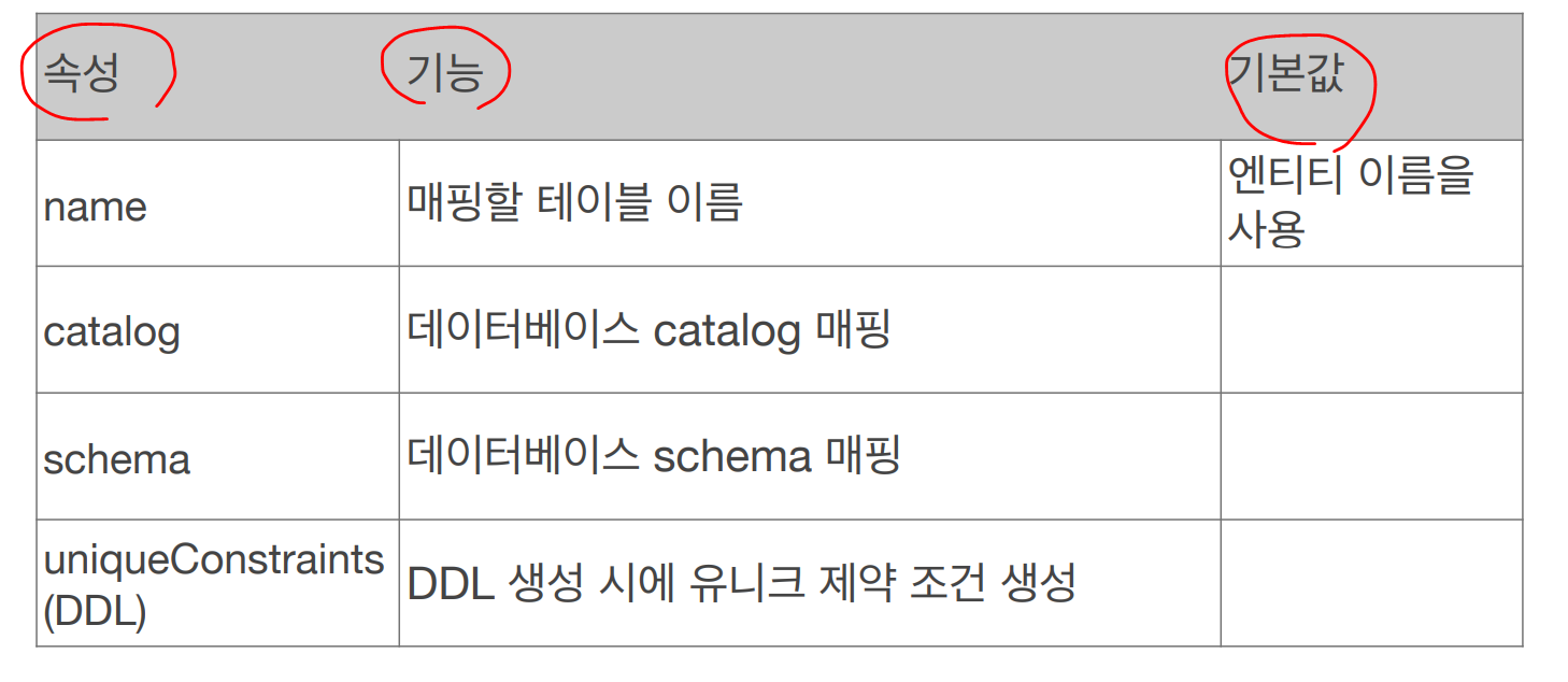 일반적으로는 @Table 어노테이션을 사용하지않아서 기본값인 엔티티 이름을 이용하여 테이블 매핑을 진행한다.