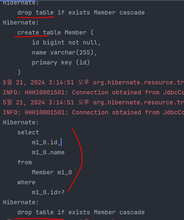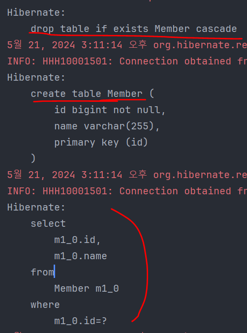 다음과 같이 해당 테이블을 삭제하고 다시 생성한다. 그리고 난 후 로직이 동작한다.