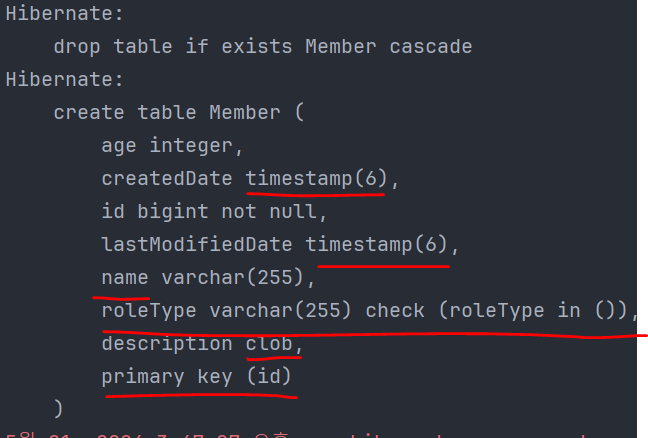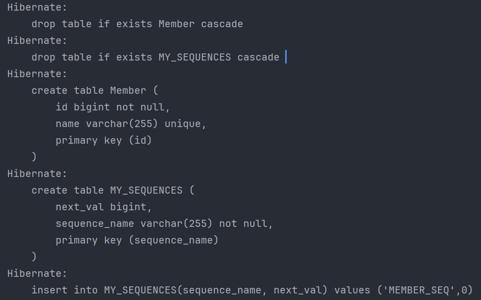 데이터베이스 스키마 자동생성 또한 설정한 방언에 따라 sql문도 잘 수정되어있다.