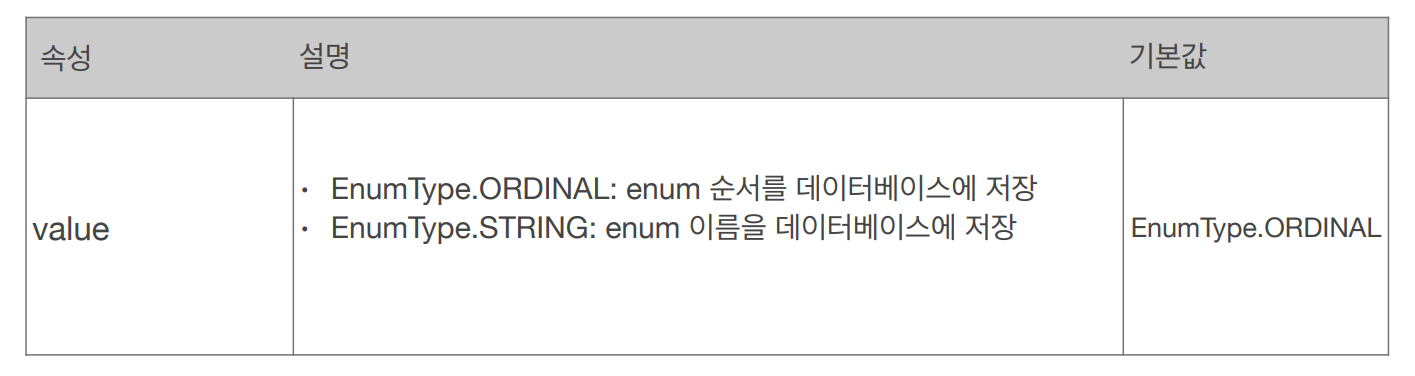 • JPA를 사용해서 테이블과 매핑할 클래스는 @Entity 필수