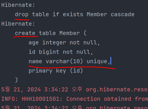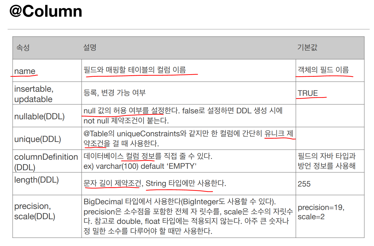 DDL 생성 기능은 DDL을 자동 생성할 때만 사용되고 JPA의 실행 로직에는 영향을 주지 않는다