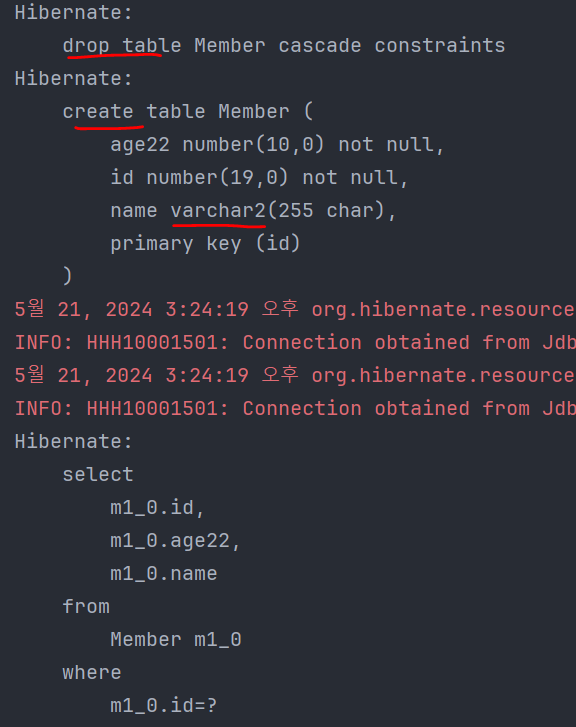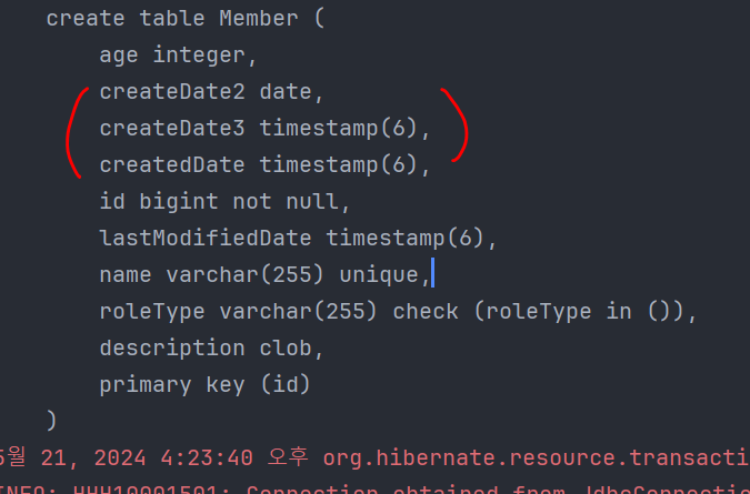 테이블 생성은 매핑된 엔티티의 정보(필드)를 보고 생성해준다.