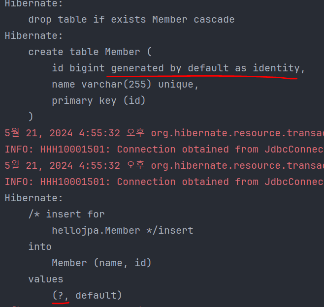 • 기본값: 클래스 이름을 그대로 사용(예: Member)