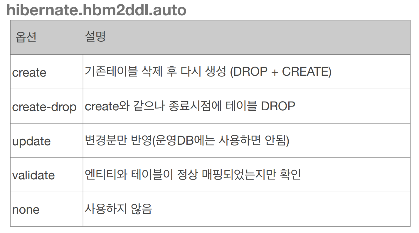 • DDL을 애플리케이션 실행 시점에 자동 생성