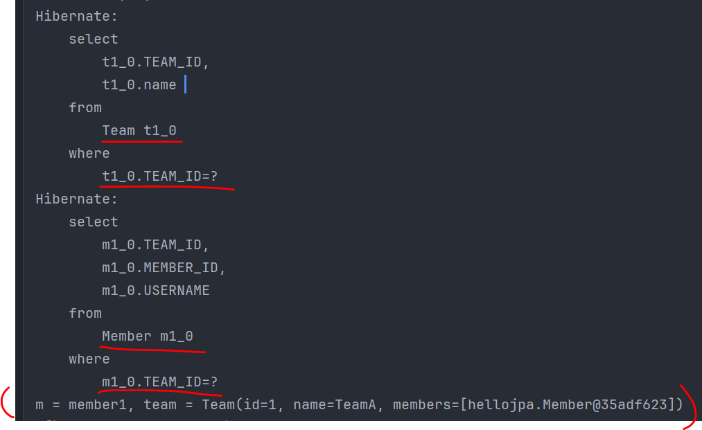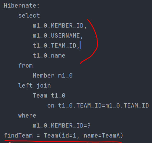 이런식으로 멤버객체를 가져오는게 객체지향 방식일것이다. [ 객체 그래프 탐색 방식 ]