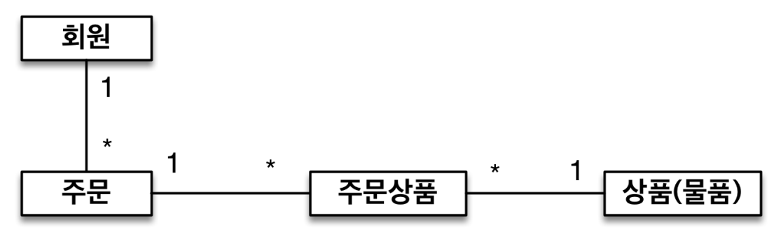 주문상품 이라는 모델을 만들어서 다대다 관계를 일다대, 다대일 관계로 풀어냄