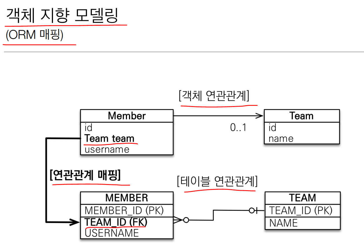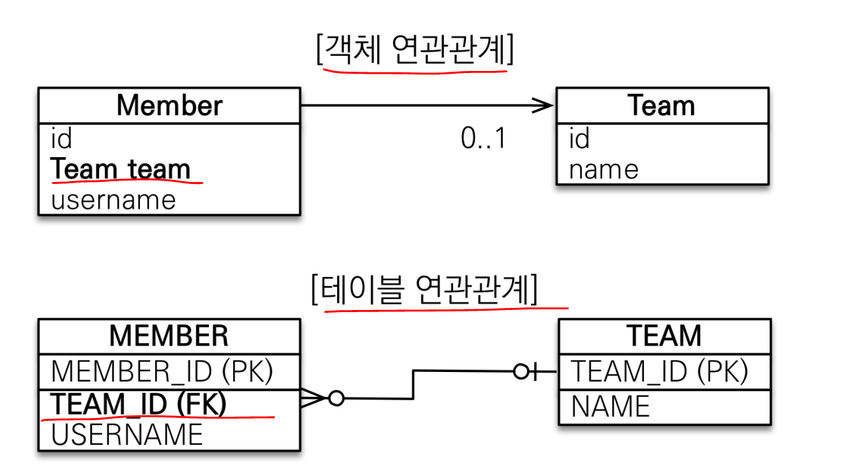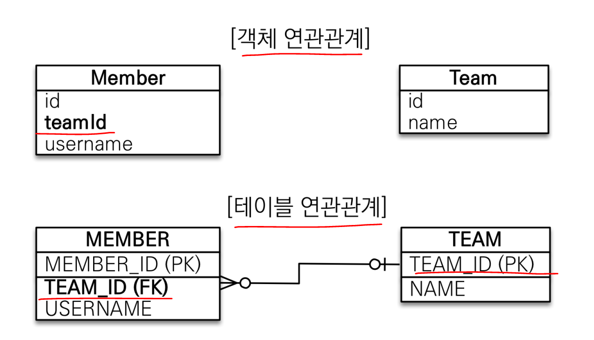 • 테이블의 외래키를 객체에 그대로 가져옴