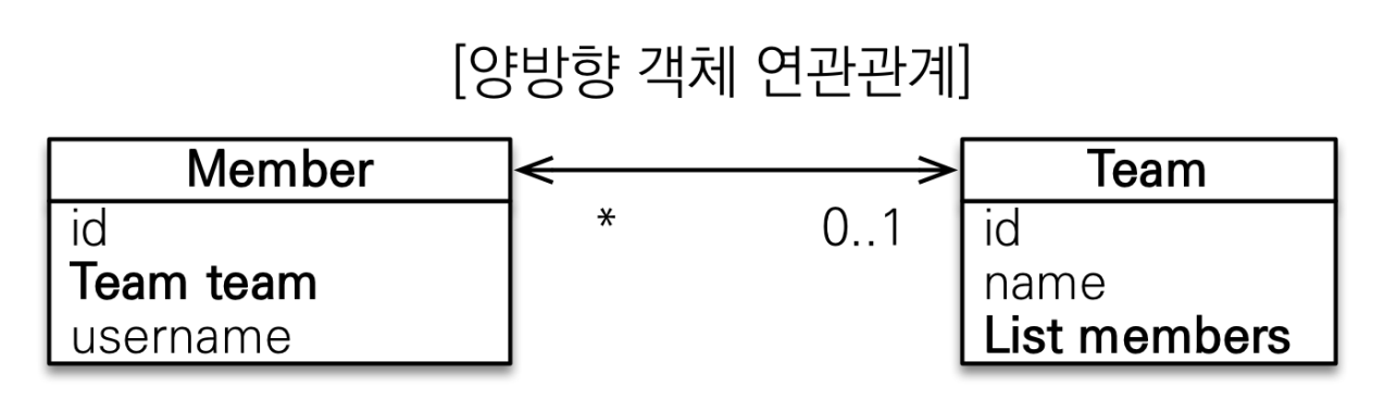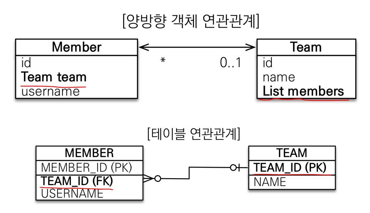 • 양방향 매핑은 반대 방향으로 조회(객체 그래프 탐색) 기능이 추가된 것 뿐