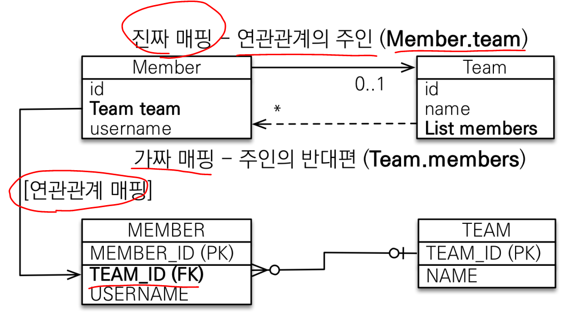 객체의 참조와 테이블의 외래 키를 매핑