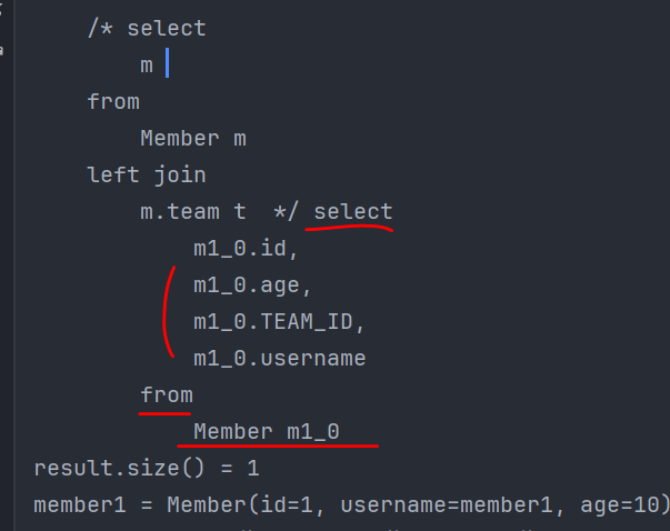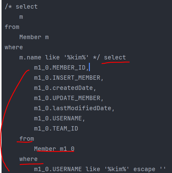 select m from Member m은 select * from Member m 하는 SQL과 살짝 차이가있다