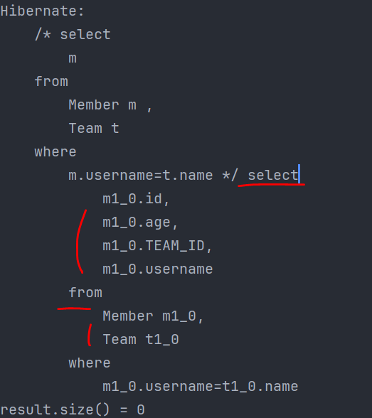 "select m,t from Member m left join Team t on m.username=t.name"