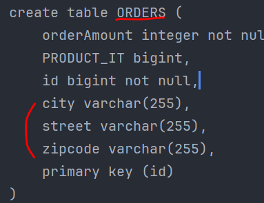 @Table(name = "ORDERS") // order는 예약어이므로 테이블생성이 안된다. 관례상 테이블명은 orders를 사용한다.