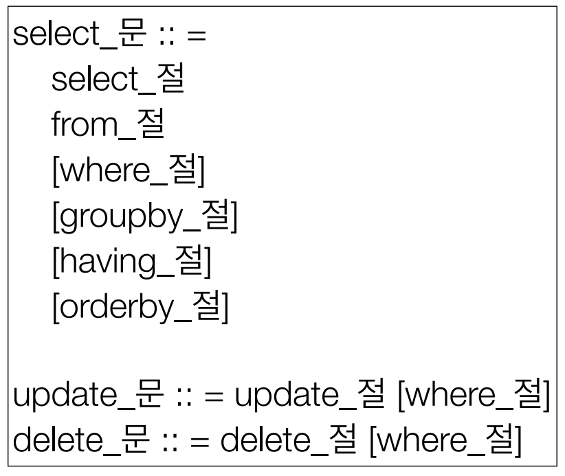 • 예) 오라클 CONNECT BY, 특정 DB만 사용하는 SQL 힌트