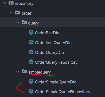 하지만 DTO를 조회해야할때는 별도로 패키지를 빼서 관리하는것이 유지보수성이 증가한다.