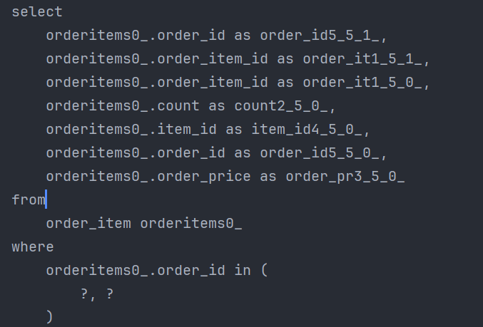 " where oi.order.id in :orderIds", OrderItemQueryDto.class)