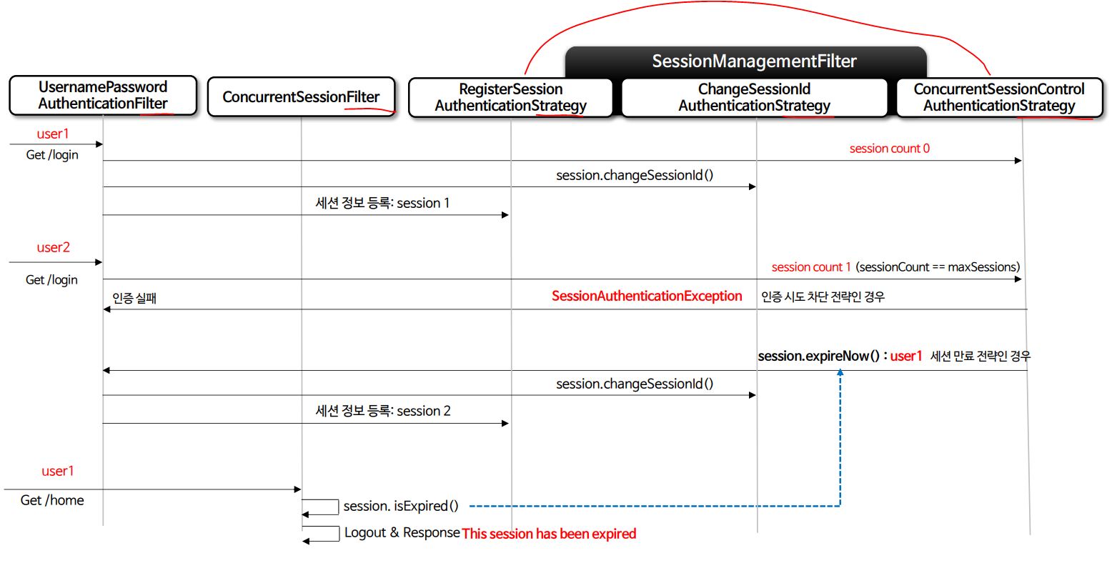 [두명의 user는 같은 아이디로 로그인을 시도한다고 가정, max 세션갯수는 1로 가정 ]