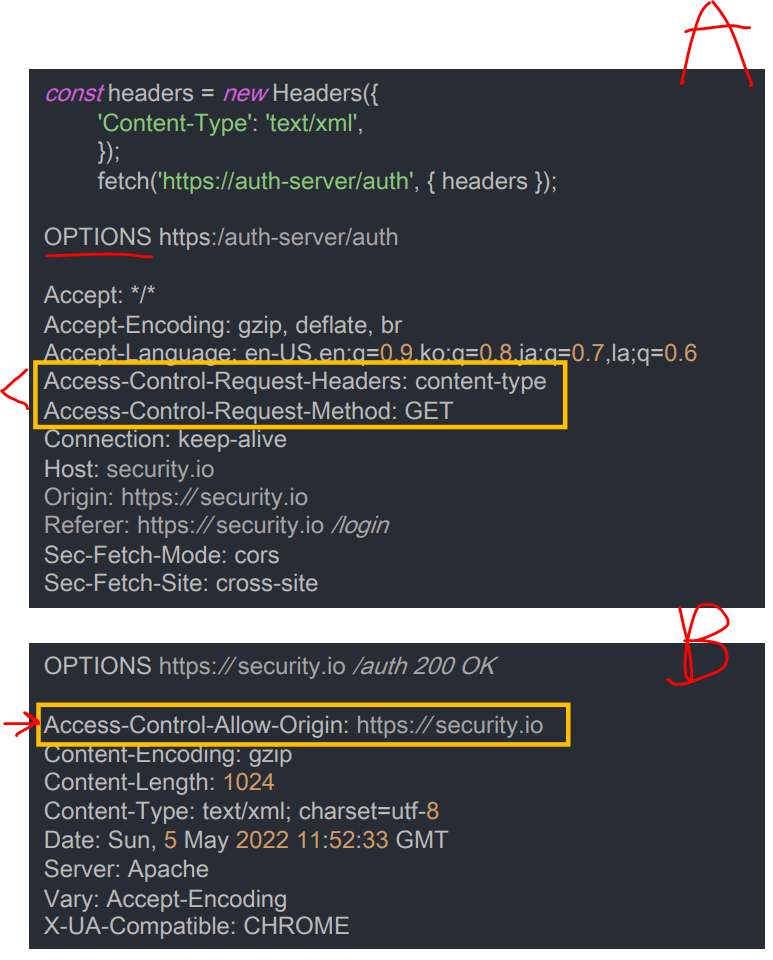 - 예를 들어, https://myapp.com이라는 웹 애플리케이션이 있고, 이 애플리케이션이 https://api.example.com/data에서 데이터를 가져오려고 한다고 가정해 봅시다.