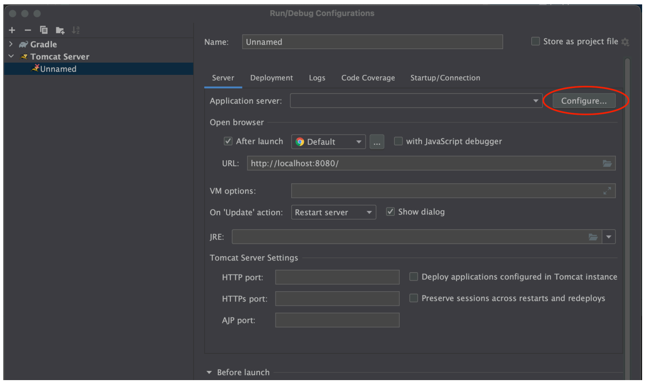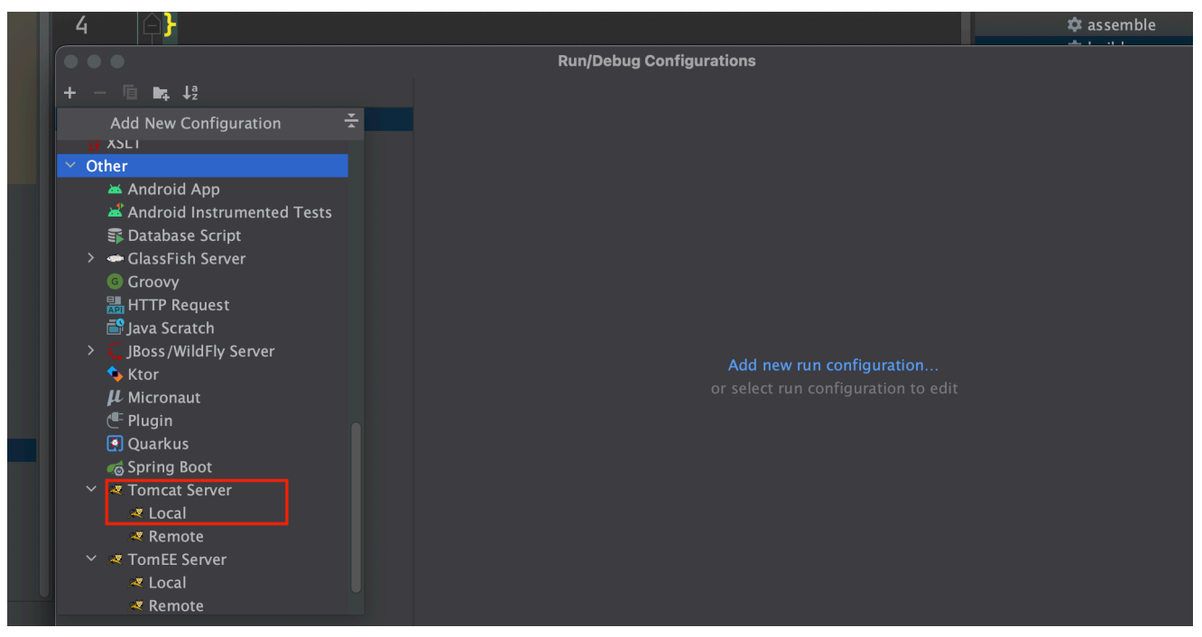 Other 하위에 있는 Tomcat Server에 Local을 선택한다.