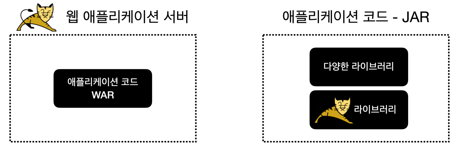 과거에 자바로 웹 애플리케이션을 개발할 때는 먼저 서버에 톰캣 같은 WAS(웹 애플리케이션 서버)를 설치했다.