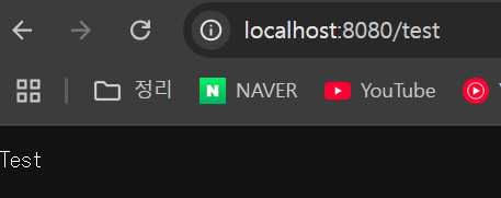 test 를 응답한다. 웹 브라우저로 요청하면 이 서블릿이 실행되고 화면에 test 가 출력되어야 한다.