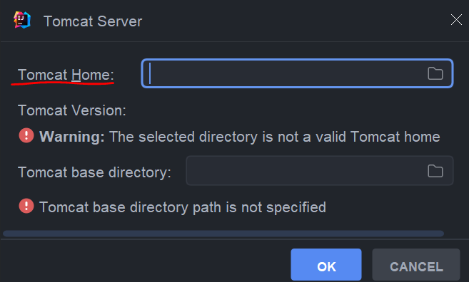 Tomcat Home: 부분에 설치된 톰캣 폴더를 선택한다