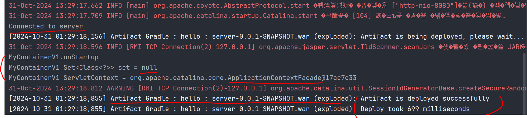 WAS를 실행할 때 해당 초기화 클래스가 실행된 것을 확인할 수 있다