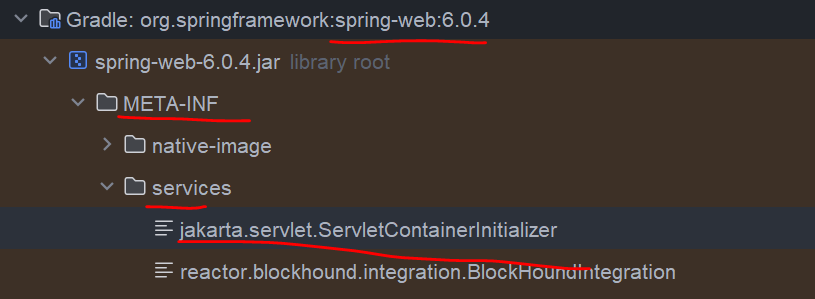 spring-web 라이브러리를 열어보면 서블릿 컨테이너 초기화를 위한 등록 파일을 확인할 수 있다.