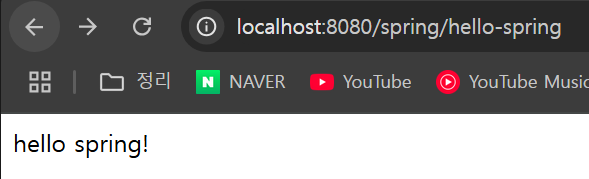 - 매핑된 메소드가 실행되며, hello spring!을 반환합니다.