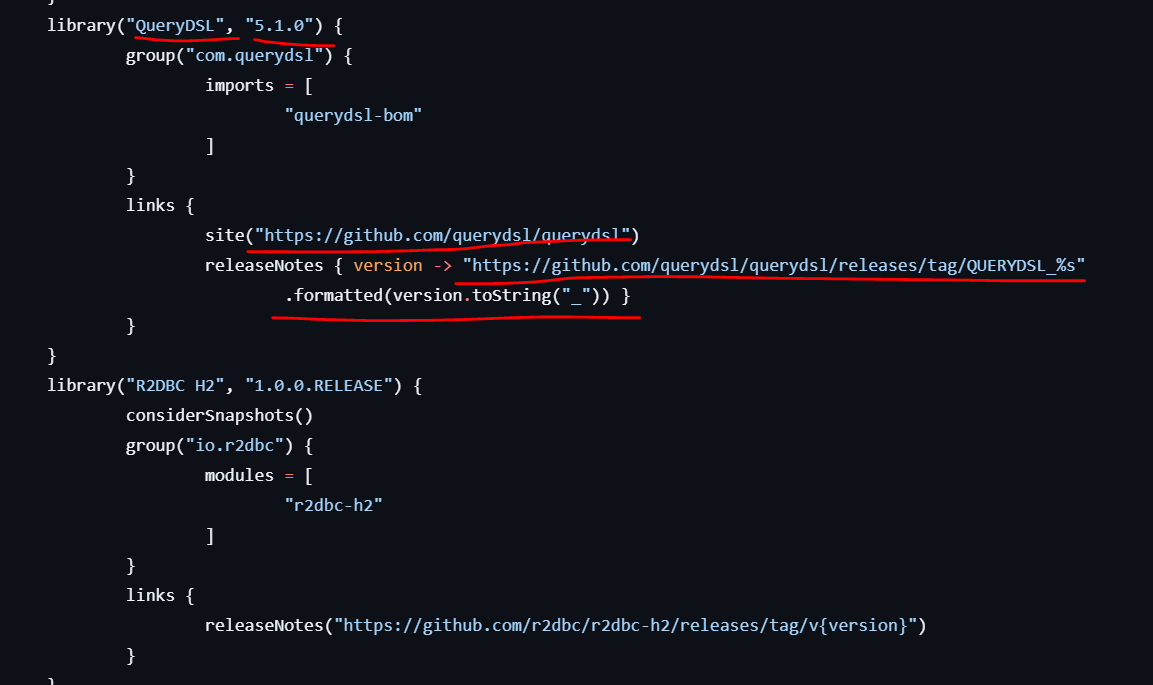 외부 라이브러리의 버전을 변경하고 싶을 때 다음과 같은 형식으로 편리하게 변경할 수 있다.