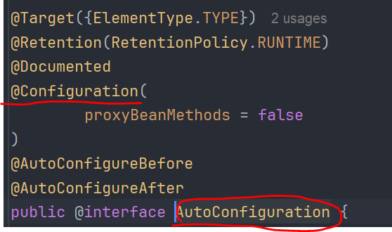내부에 @Configuration 이 있는 것을 확인할 수 있다.