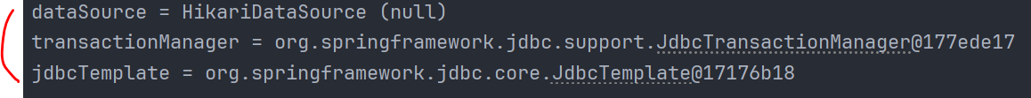 앞서 빈으로 등록한 JdbcTemplate , DataSource , TransactionManager 가 모두 사용되었다.