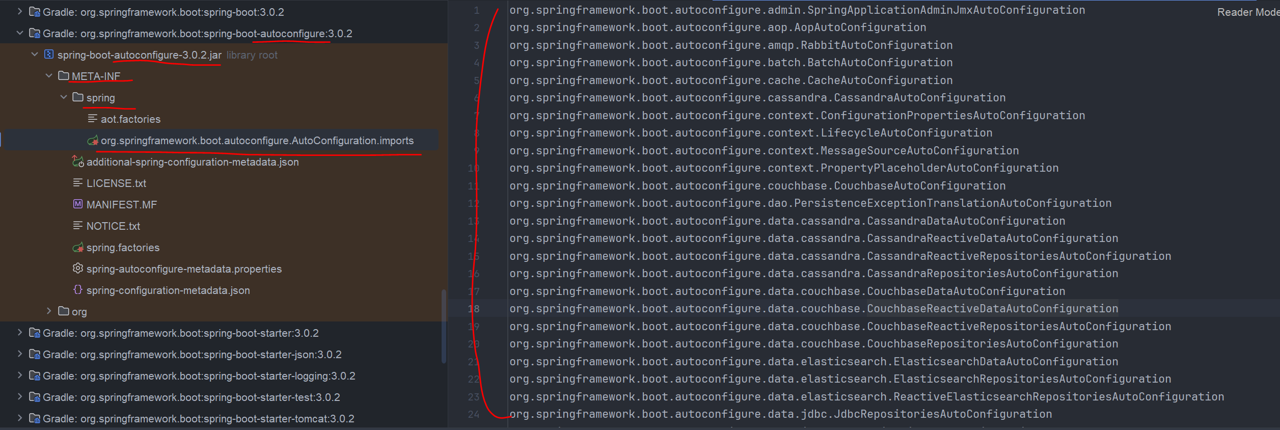 즉 모든 라이브러리를 돌면서 org.springframework.boot.autoconfigure.AutoConfiguration.imports를 찾고