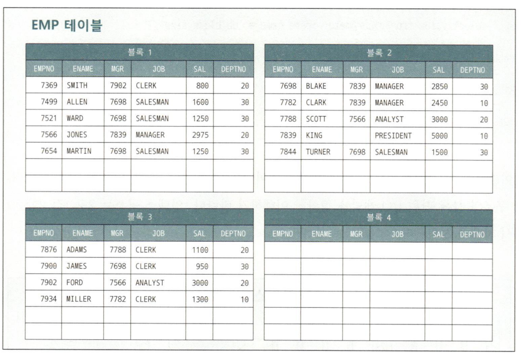 ( DB는 블록단위 I/O를 진행한다. 행 하나가 필요해도 그 행이 포함된 블록을 읽어온다.