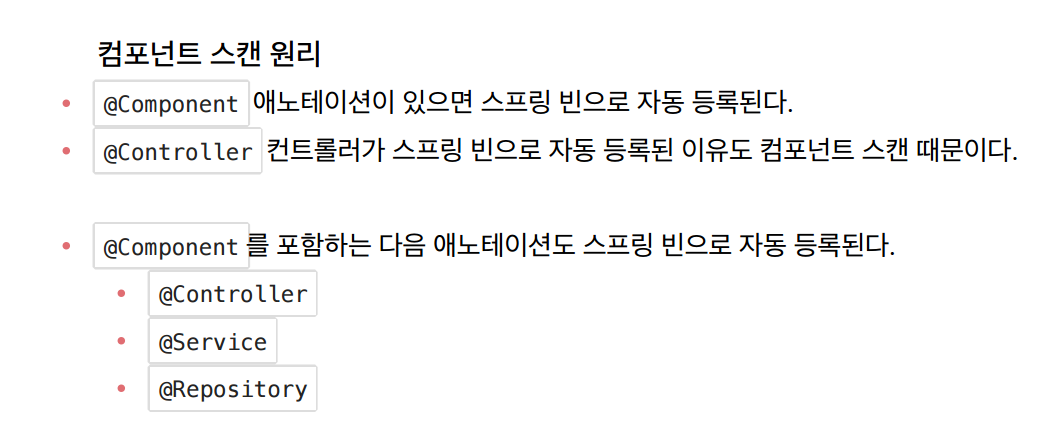 컴포넌트 스캔(컴포넌트관련 어노테이션을 찾아 스프링빈으로 등록해주는 일련의 과정)