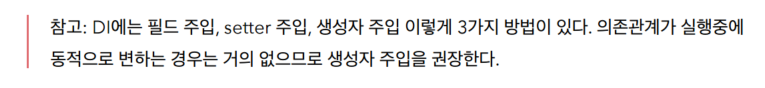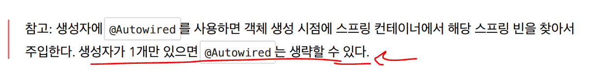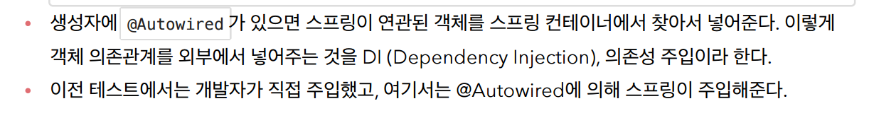 이렇게 생성자에 사용하며, 스프링 컨테이너에 있는 스프링빈을 이용하여 객체를 생성해준다.