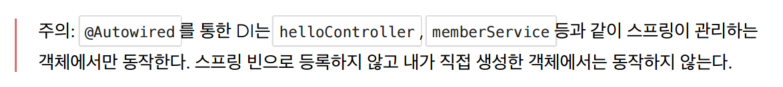 멤버서비스가 스프링에 등록되고 스프링이 관리를 해야 @Autowired로 적용할 수 있다는 것이다.