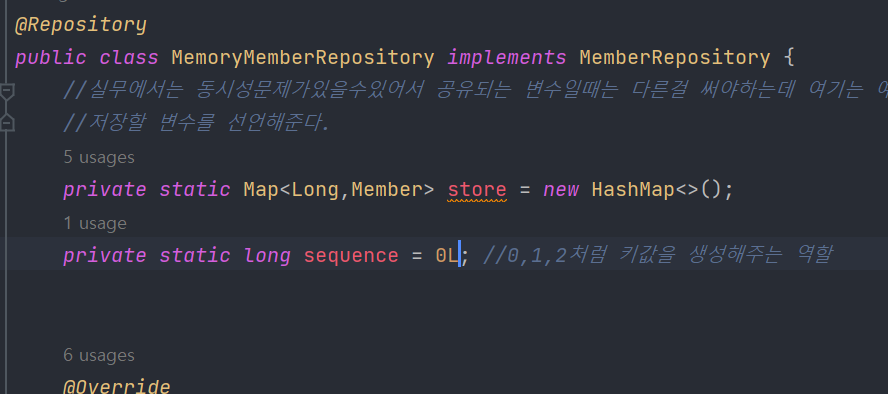 그 이유는 멤버리포지토리는 스프링컨테이너에 딱하나뿐이기때문이다(싱글톤)